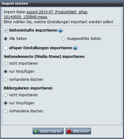 Beim Importieren von Inhalten aus anderen ePapern können Sie ab sofort wählen, ob und welche Inhalte übernommen werden sollen.